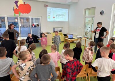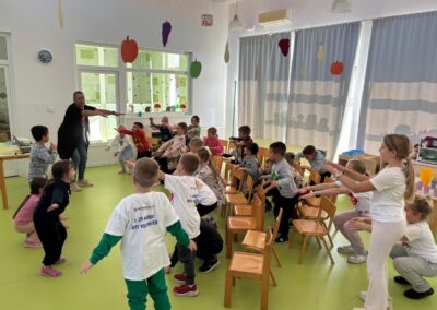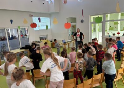 Zajedničko druženje završilo je vježbanjem kako bismo ostali fit. Djeca su nam pokazala koje sve vježbe izvode u svojoj grupi te smo zaključili kako su vrlo fleksibilni i kako im nijedna vježba nije teška.
