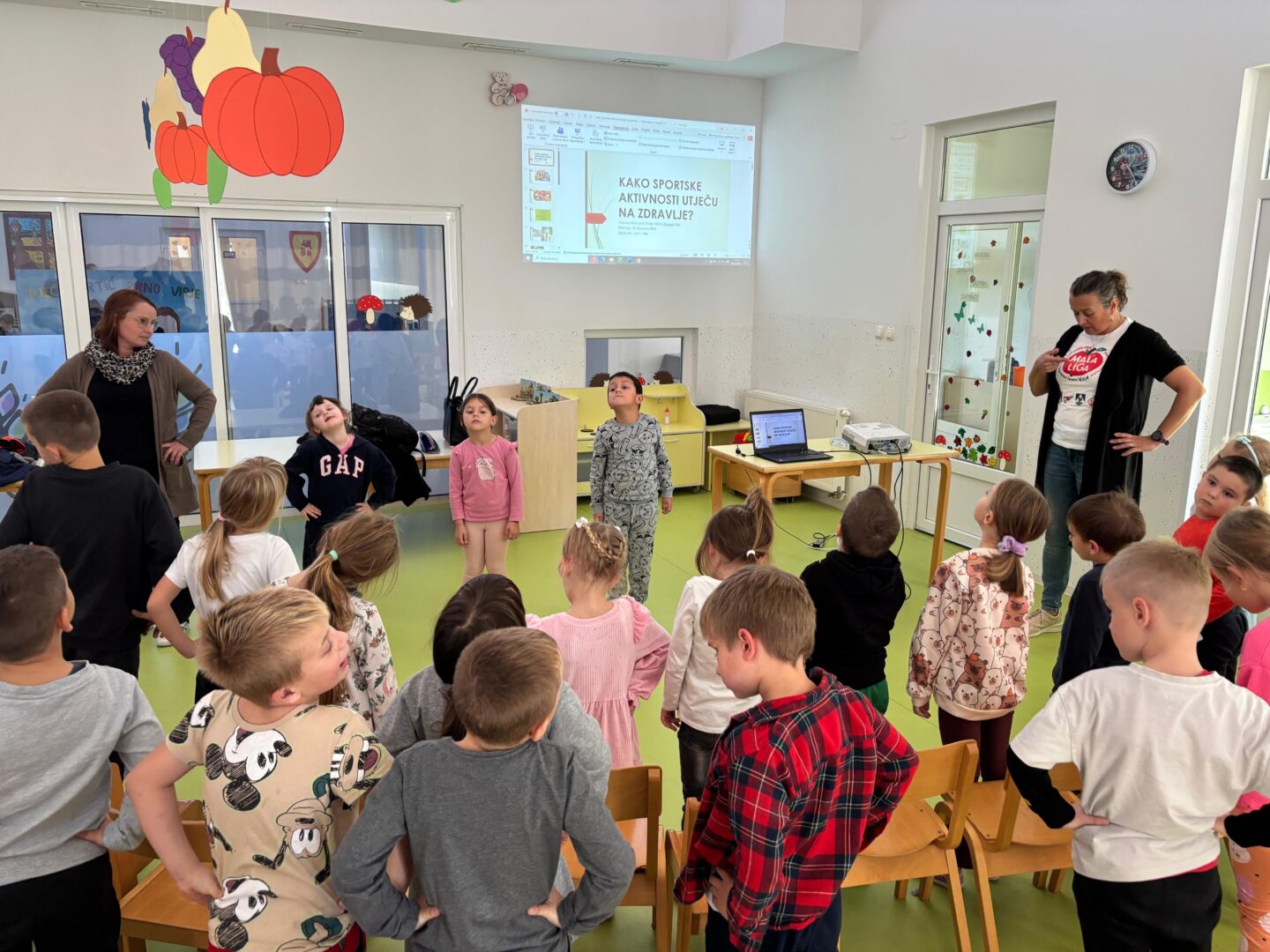 Zajedničko druženje završilo je vježbanjem kako bismo ostali fit. Djeca su nam pokazala koje sve vježbe izvode u svojoj grupi te smo zaključili kako su vrlo fleksibilni i kako im nijedna vježba nije teška.