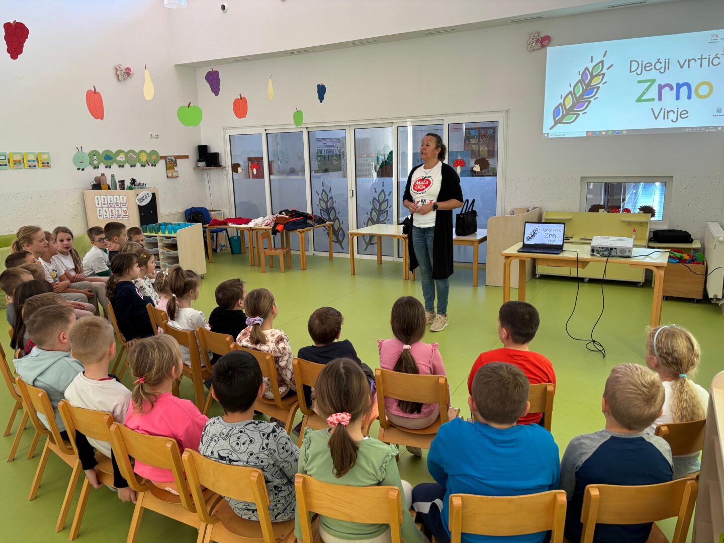 U ponedjeljak, 28. listopada 2025. članovi Male lige virovske škole sa svojom su voditeljicom učiteljicom Natašom Sušanj posjetili Dječji vrtić Zrno. Predškolskoj skupini predstavili su se temom Kako sportske aktivnosti utječu na zdravlje. Voditeljica Male lige ispričala je vrtićarcima kojim se sve sportovima mogu baviti, što uključuje osobna higijena te ih upoznala sa zdravim i nezdravim namirnicama. Vrtićarci su postavljali brojna pitanja te aktivno sudjelovali u razgovoru što sve činiti kako bismo ostali zdravi.