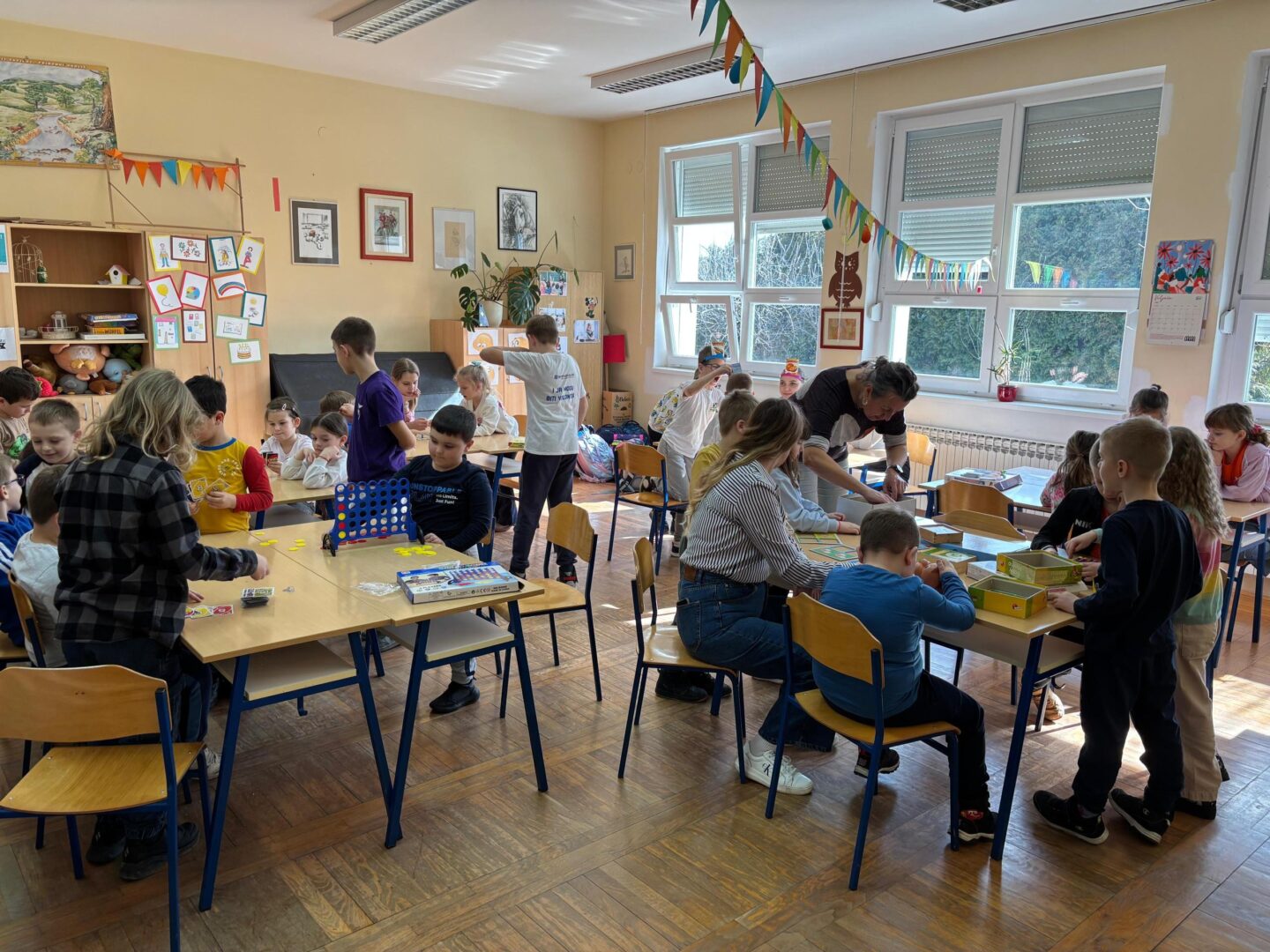 U ponedjeljak 23. veljače 2026. najstarija odgojna skupina iz Dječjeg vrtića „Zrno” posjetila je članove Male lige i njihovu voditeljicu Natašu Sušanj. Danas je na redu bilo igranje svima poznatih društvenih igara. Ne znamo jesu li u igranju, grickanju, druženju i smijehu uživali više veći (ligaši) ili manji (vrtićarci), samo znamo da je pao dogovor za druženje već u ožujku u našoj školi – zajedno će izrađivati čestitke povodom Uskrsa koju s veseljem svi očekuju.