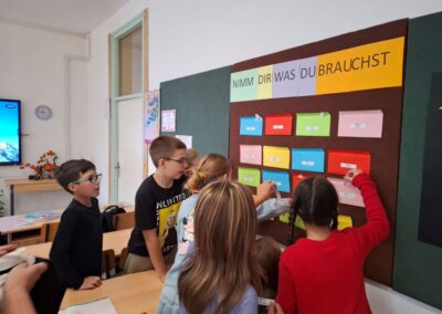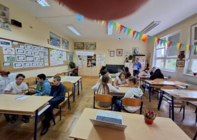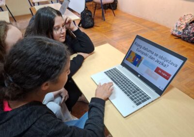 Na samom početku učiteljica Ana je s učenicima odigrala kviz znanja na temu poznavanja jezika i država Europske unije. Zatim su učenici saznali nekoliko zanimljivosti o Njemačkoj, Austriji i Švicarskoj, a nakon toga zaigrali igre poput: slaganja i pogađanja zastava njemačkog govornog područja, opisivanja slika i znamenitosti, prepoznavanja poznatih osoba i većih gradova, memori s najpoznatijim njemačkim automobilskim markama i brojne druge. Učenici su provjerili i svoje znanje poznavanja germanizama.