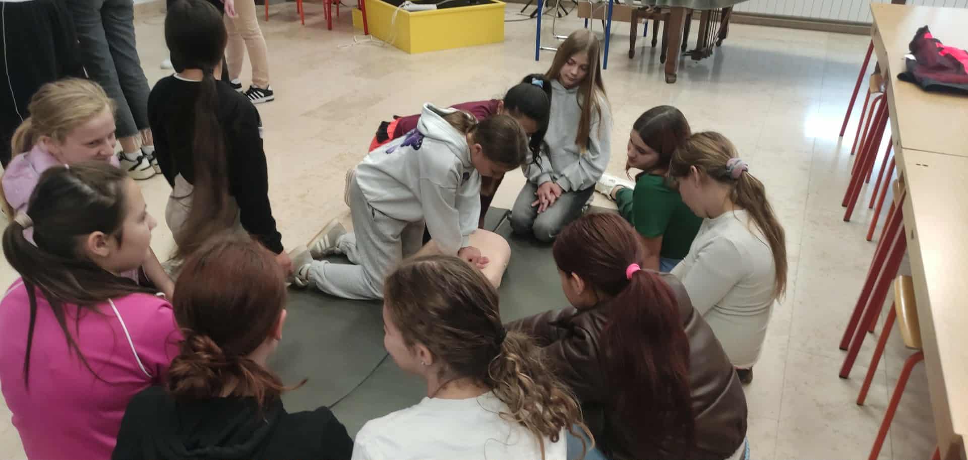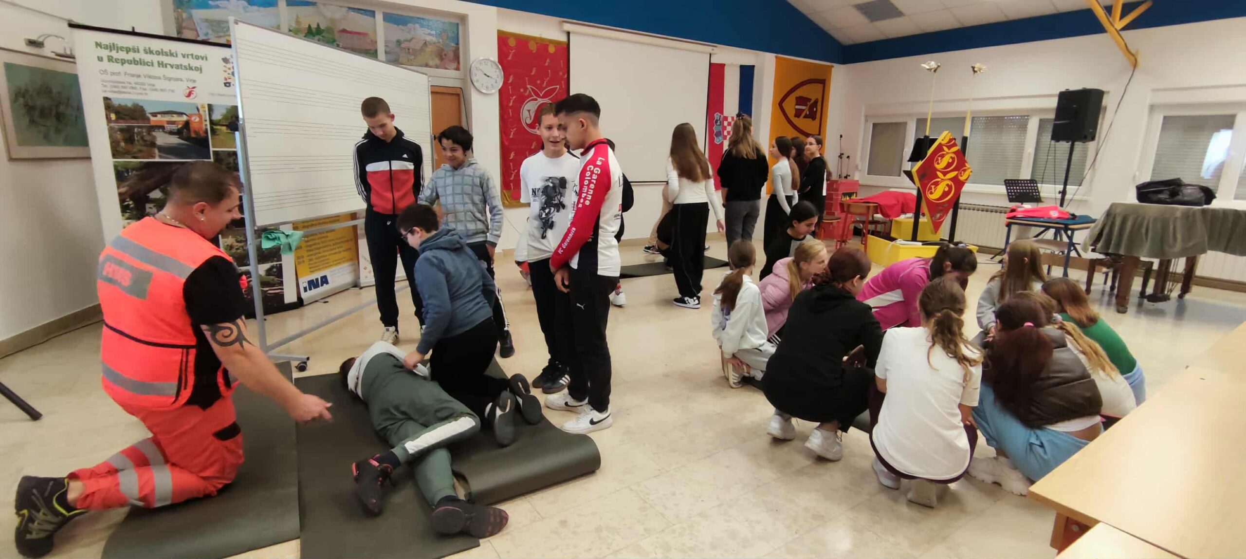 Dana 15. listopada 2025. Tim hitne medicinske intervencije iz Đurđevca našim je sedmašima objasnio i pokazao osnove pružanja prve pomoći. Učenici su dobili informacije o načinima postupanja u slučaju da se nađu u situaciji da je nekome potrebno pružiti prvu pomoć; što je najvažnije učiniti i kako se ponašati do dolaska medicinskog osoblja.