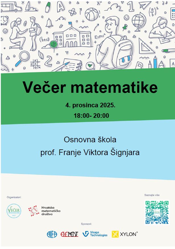 Pozivamo učenike, roditelje, bake i djedove na Večer matematike koja će se održati 4. prosinca 2025. u 18 sati.