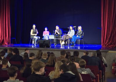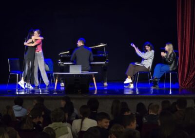 Uz glumicu i pjevačicu Neru Stipičević sudionici recitala su i Tomislav Parmać (pratnja na klaviru) te Tea Šimić (tehničarka) koja je nakon predstave moderirala okrugli stol u kojem je sudjelovala i naša učiteljica Danijela Sunara-Jozek, a učenici su u razgovoru sa sudionicima iznijeli svoje mišljenje o predstavi te podijelili svoja razmišljanja o temama kao što su: dar, strah, autentičnost, uspjeh, glazba, buduće zanimanje…