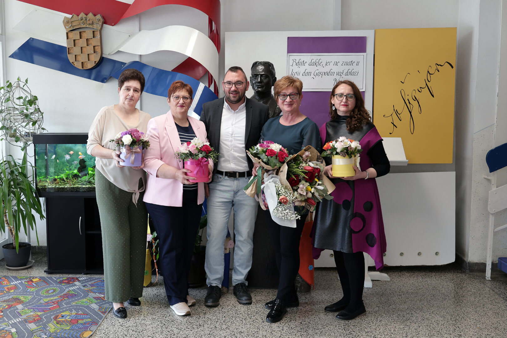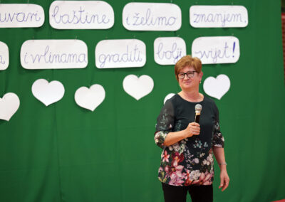 Prisutnima se obratila općinska načelnica Kristina Filipović i uz lijepe želje povodom Dana škole. Istaknula je zajedništvo i veliku ulogu Škole i Općine s namjerom da naša djeca budu obrazovana, ali i zadovoljna provodeći sretno i ispunjeno djetinjstvo.